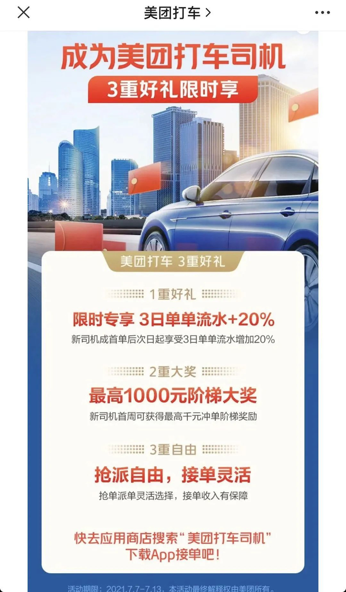 美团打车相关人士告诉新京报贝壳财经记者,“夏季是网约车打车旺季,用户需求量比较大,所以在夏季招募司机。”