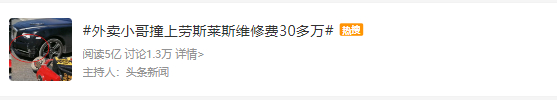 外卖小哥撞上600万劳斯莱斯登热搜 30多万维修费谁来赔偿