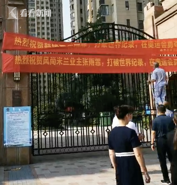 视频|张雨霏所在小区挂横幅庆祝 周边游泳馆也火了