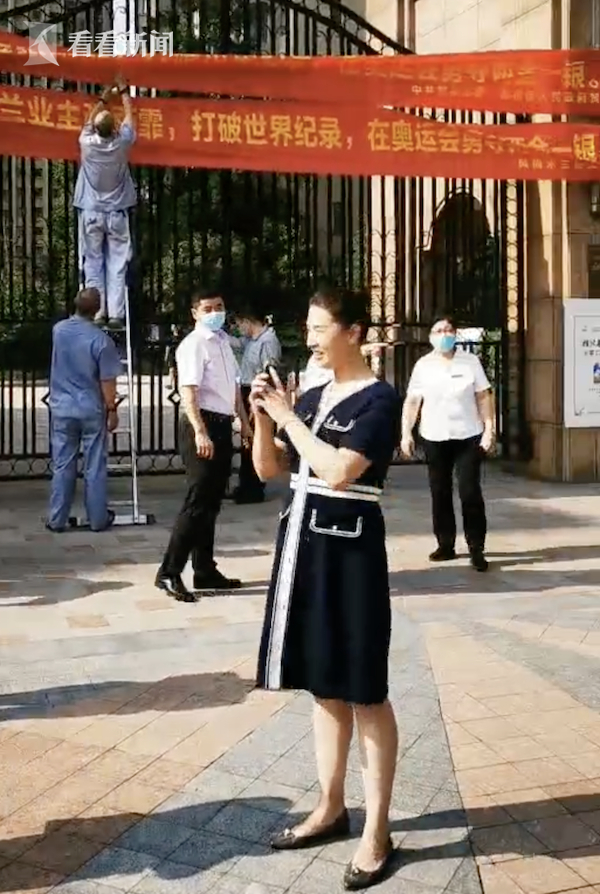 原标题:视频|张雨霏所在小区挂横幅庆祝 周边游泳馆也火了
