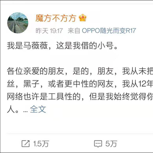 各位亲爱的朋友,是的,朋友,我从未把你们当成粉丝,黑子,或者更中性的网友,我从12年开始玩微博,网络也许是工具性的,但是我始终觉得你们是真实的人。