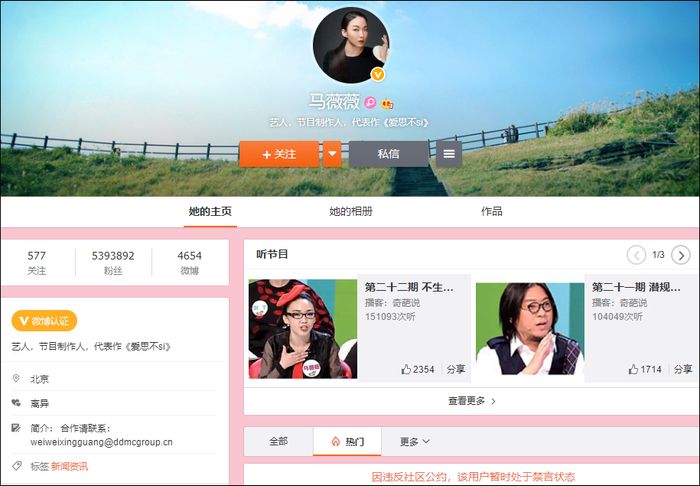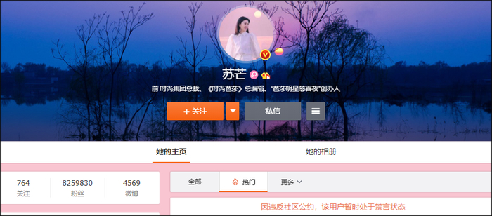 吴亦凡被刑事拘留后,中国内地女艺人@马薇薇 ,女作家@六六 ,前时尚集团总裁、《时尚芭莎》总编辑、“芭莎明星慈善夜”创办人@苏芒 等人的微博账号先后被禁言。