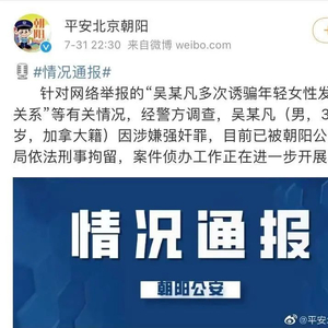 ▲7月31日,警方通报吴亦凡被依法刑拘。图片来源:平安北京朝阳官方微博