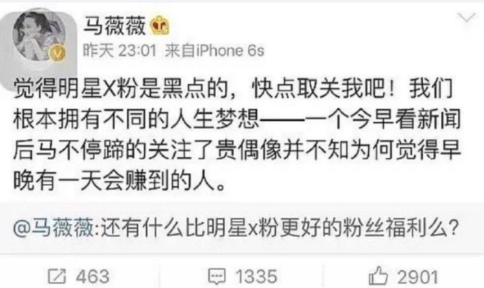 在马薇薇社交账号被封的前一天,朝阳警方公布吴亦凡涉嫌违法行为被刑拘,随后有网友翻出马薇薇在几年前吴亦凡不当行为传闻中发表的偏激言论,言语粗俗不堪。