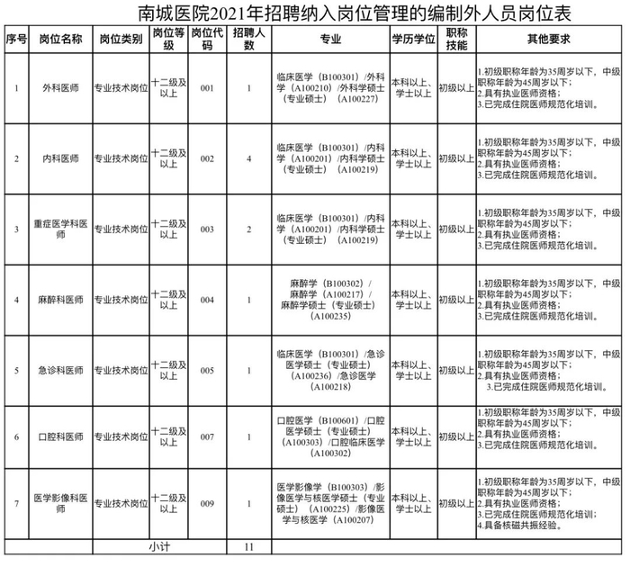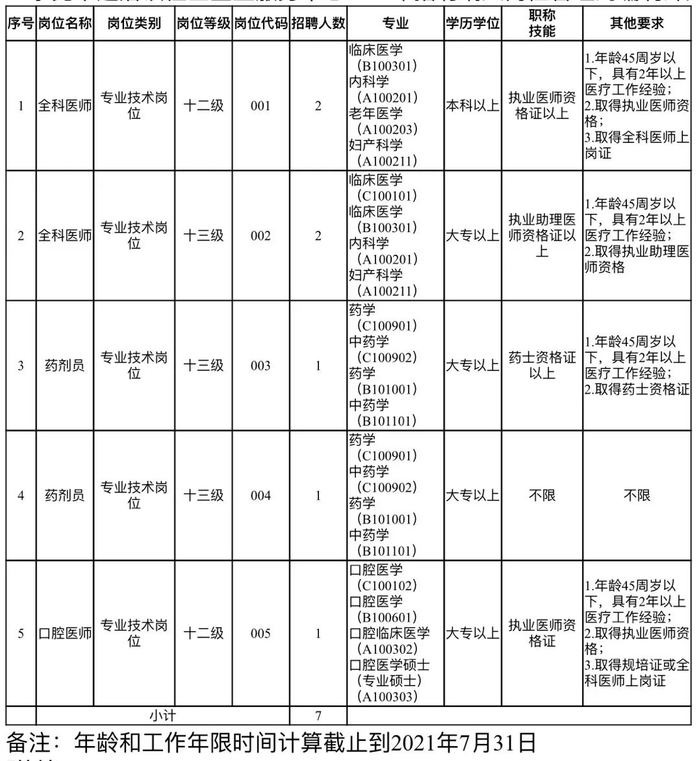 本次招聘卫生专业技术岗位7人,具体岗位情况和要求见岗位表。