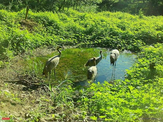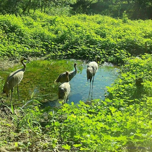 在南海子公园麋鹿苑成功自然孵化的2只灰鹤幼雏,吃着小虫等高蛋白食物正在健康长大,腿比原来粗了,个头儿也长高了,翅膀开始长羽毛,2只灰鹤幼雏在满月时便能跟着爸爸妈妈外出看世界;满60天时,两只小鹤长得更大,羽毛更加丰满,不但吃高蛋白的小虫,也能吃果实、粮食,个头儿快跟爸爸妈妈一般高了,喜欢洗澡、梳理羽毛,非常漂亮。
