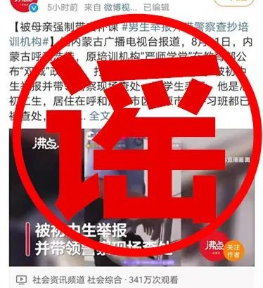 原标题:男孩不满母亲强制补课带警察查抄补课机构?辟谣了!