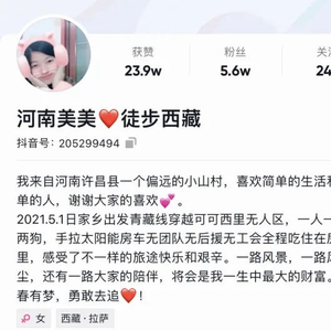 “一片大地,盖上喜欢的房子,种上粮食瓜果蔬菜,鸡鸭鹅奶牛,救助流浪狗,还有敬老院,单纯不违心,这是我的理想。”7月3日,在徒步西藏的第60天,抖音博主“河南美美 徒步西藏”用一段视频记录下了她当时的心境。