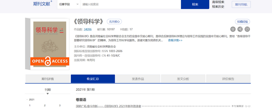 澎湃新闻注意到,该篇论文刊登在《领导科学》2021年第一期女性领导栏目,《领导科学》被北京大学《中文核心期刊要目总览》列为来源期刊。《领导科学》期刊官网介绍,该刊是由河南省社会科学界联合会主办的全国中文核心期刊,是综合反映领导科学理论与领导工作实践的全国中文核心期刊。读者对象为党政机关、企事业单位管理人员、理论宣传工作者。连续多年被评为全国中文核心期刊。