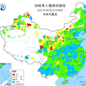 8月24日8时,20厘米土壤相对湿度。 来源:中央气象台