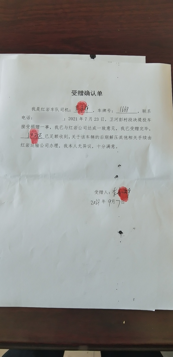 8月13日,红岩运输公司下发了给5名司机每人6000元补助、1000元爱心企业捐款,并许诺一个月内解决车的赔偿问题。