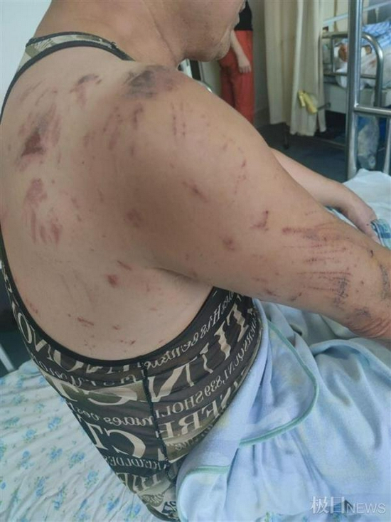 兰先生的胳膊、后背和腿上布满了伤口和划痕,他说自己的伤基本上都是皮外伤,暂时不用做手术。兰先生的儿子还没来得及从外地赶回来,他暂时由哥哥照顾。
