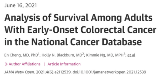 2021年6月发表在JAMA Netw Open上的一项研究指出,结直肠癌不仅年轻化,而且与在50-51岁诊断的结直肠患者相比,年轻患者的生存率更低。②