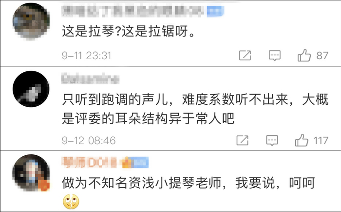 9月12日,自称参赛者母亲的网友发布了其女儿在家演奏《布鲁赫g小调协奏曲》参赛的完整视频,称他们“完全接受89.5的分数”,但是,“把布鲁赫这种难度的曲子演奏成这样,得89.5分的话,那冠军拉的难度系数低两个重量级的《前奏与快板》,完成度得有多高,拿91分才能名副其实”。