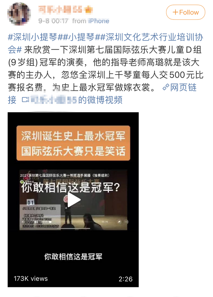 原标题:家长质疑深圳国际弦乐大赛冠军有黑幕,主办方:她通过混剪视频歪曲事实