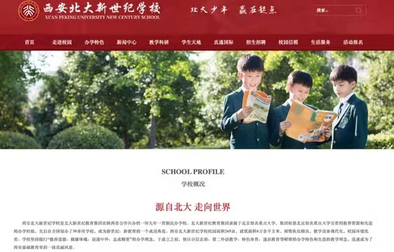 在西安北大新世纪学校的官网上,虽然依然存在“源自北大 走向世界”的标语,但在集团介绍的表述却是“北大新世纪教育集团隶属于北京知名重点大学,集团依靠北京知名重点大学宝贵的教育资源和先进的办学经验,先后在全国创办了30多所学校,成为新世纪、新教育的一个成功典范”。