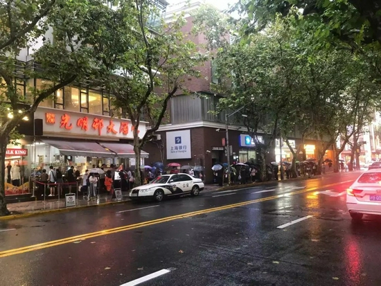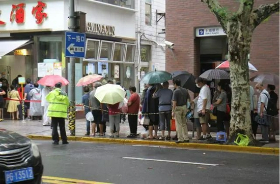 上海街头上却有着一群人排着队