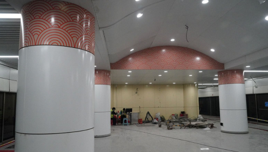 “在车站的装修中,我们采用了祥云图案进行装饰。”京投所属轨道公司第一项目管理中心设备部部长王庆介绍,目前车站站台层的装修已经完工,屏蔽门等设备已经安装到位。