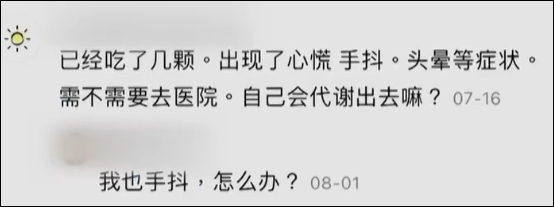 然而,很多买过的网友在网上发帖,吃完减肥糖,瘦是瘦了,可副作用极其明显,睡不着觉、心慌、手抖、头晕……