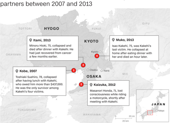 原标题:74岁日本“黑寡妇”用氰化物谋杀四任情人 独占8亿日元 被判死刑