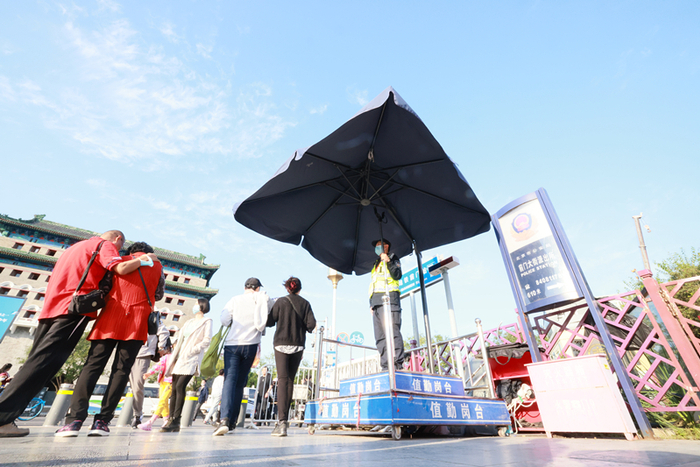 此外,张召龙说,由于这处警务岗亭非常显眼,南来北往的游客时常会向岗亭内的安保人员问路,“有的时候,各地的群众围在岗亭四周,一起向你问路。此时我们不仅要为群众耐心解答,还要时刻关注周围的安全情况,必须做到‘眼观六路,耳听八方’,确保服务群众的同时,还能确保群众一切平安。”