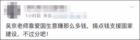 有称吴京“靠爱国生意赚那么多钱,捐点钱支援国家建设,不过分吧”的;更有诡异的说法——“我买票是因为崇敬志愿军,不是崇拜明星。但明星是在拿志愿军的死来赚钱……人血馒头好吃吗?”