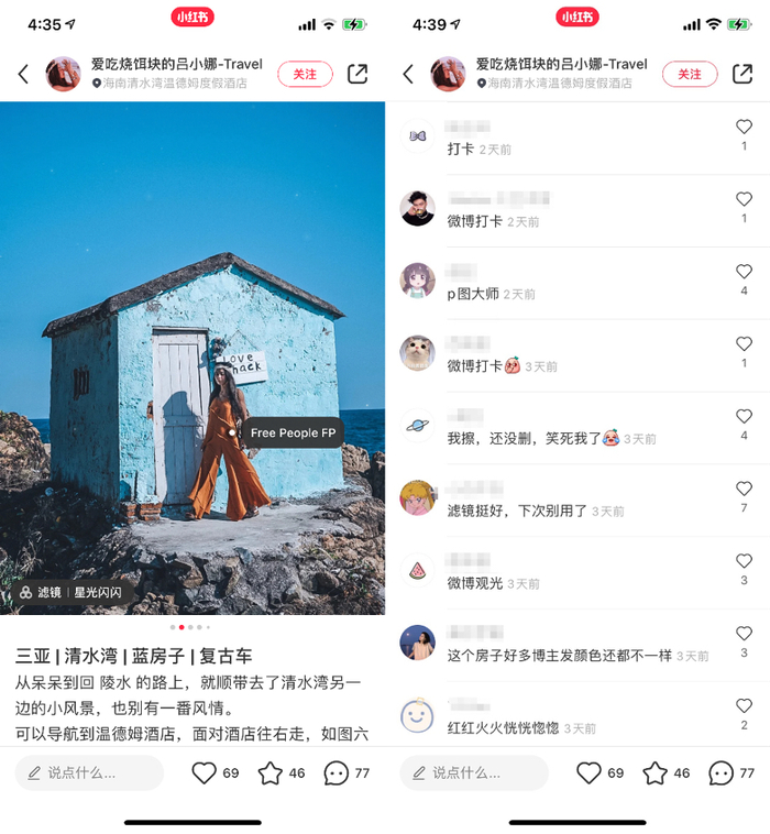 吕小娜只是因为滤镜照片登陆热搜、甚至遭遇争议的众多博主之一。近日,因为粉色沙滩、蓝色小屋、青岛天梯、武汉甜品书店等滤镜照片,小红书接连登陆微博热搜。