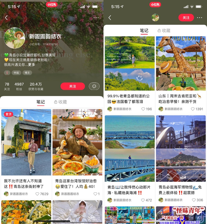 来自青岛的博主@新圆圆圆结衣 同样否认过度使用滤镜、扭曲原本风景——在她看来,自己的笔记有5张图片,有像电影镜头般追求效果的特写,也有更偏写实、景点全景和周边环境的照片,再加上笔记文字部分里已经说明只能玩10分钟左右,“说的很清楚,就是一个指导大家在野生景点拍照的攻略”。