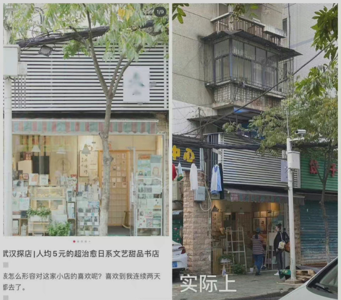 在那篇内容里,王花花分享了当时在武汉高雄路1号附9号的春山甜品书店消费体验,并在标题中写道——“超治愈日系文艺甜品书店”,在分享内容中写道,希望武汉像这样浪漫又治愈的文艺小店能再多一点 。但这篇笔记被认为是“照骗”,网友前往探店时,认为自己看到的“春山”非王花花分享中的“春山”。对比图拼在一起,被网友热议,上了热搜。