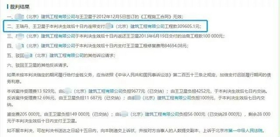 法院查明后判决:双方签订的《工程施工合同》无效;王珞丹、王卫星连带支付原告豪雅公司工程款309605.1元;豪雅公司返还王卫星交付的洽商工程款100000元,并支付王卫星工程修复费用84694.08元等。