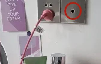 住了一段时间后,小朵有一天早上化妆的时候发现电源插盘旁边的电视连接点似乎有问题,于是小朵上前查看。
