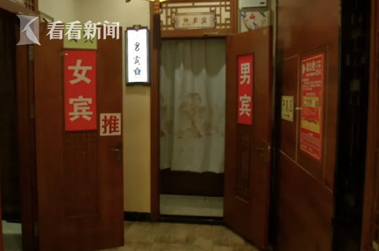 记者来到足浴店发现,会馆的前台在一楼,往里走就是男女浴区,门上都有提醒的标识。工作人员说,男女浴区都分别有前后两个门,前门进去后是换衣服的地方,后门进去是浴区,服务员都在前门附近服务,当时这名男子,是从男浴区的后门出来,直接进入女浴区的后门。