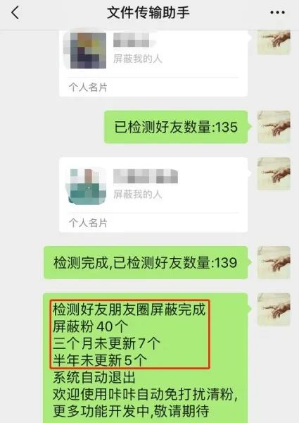 “很快的,我估计只有2分钟都不到。”郑小姐的微信“文件传输助手”收到了一份“体检报告”:除了显示已检测好友数量外,还将那些屏蔽自己的好友名片逐一推送给她。