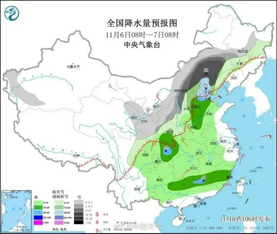 11月6日至9日,我省将出现全省性雨雪、寒潮、大风天气。