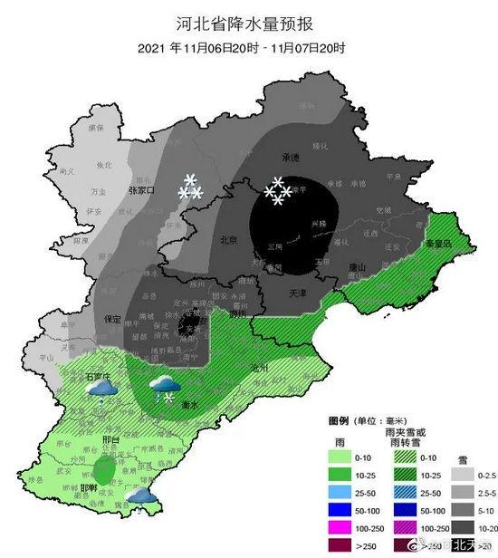 明天夜间到6日,张家口、承德、保定西北部有雨夹雪转大雪到暴雪