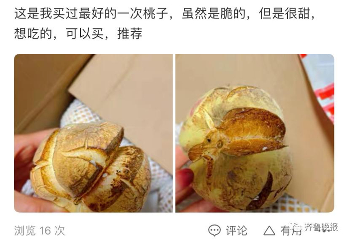买家的评论中,好评如潮——“又脆又甜,很好吃,很新鲜,只是正常的开裂,不是坏的。”“真的是不管什么都不可以看外表,好吃的不得了。”“第一次买这种桃子,真的很棒。看着不漂亮,但是真的好吃,有甜又脆。”