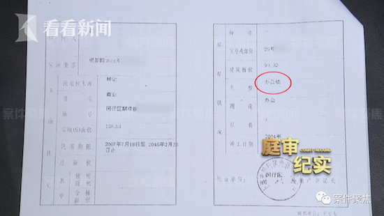 5月15日,闵行法院第一次开庭审理此案,而在庭审的一开始,被告一方就扔出了一个重磅炸弹:系争房屋,本身的性质就不是民用住宅,在房屋类型上明确写着:办公楼,三个字。