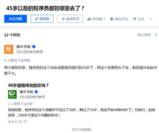 有网友调侃:再次感到欣慰,程序员这个年龄话题居然提问到了45岁,照这个发展势头下去,熬到退休年龄问题不大。