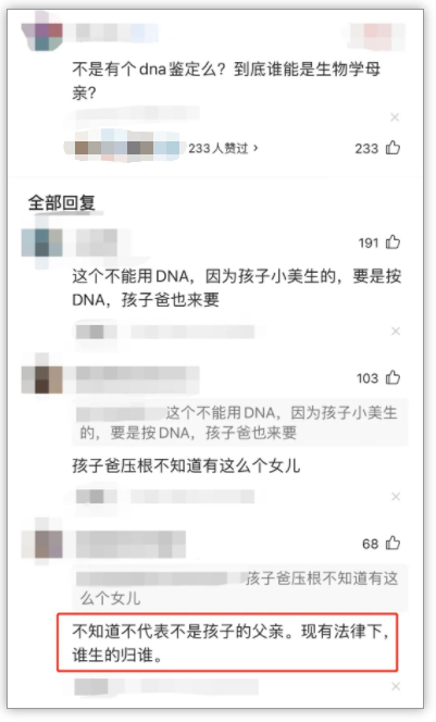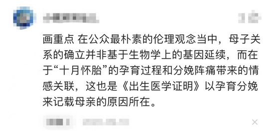 也有网友认为,不可以承认代孕就是妈妈: