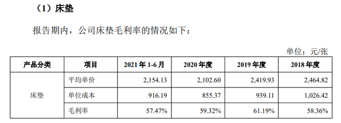 任何一家企业的生产成本,最终都是由消费者买单的。招股书(申报稿)披露,2020年慕思床垫的平均单位成本只有855元,今年上半年也不过为916.19元。但查阅电商平台上的慕思床垫售价,有的高达上万。