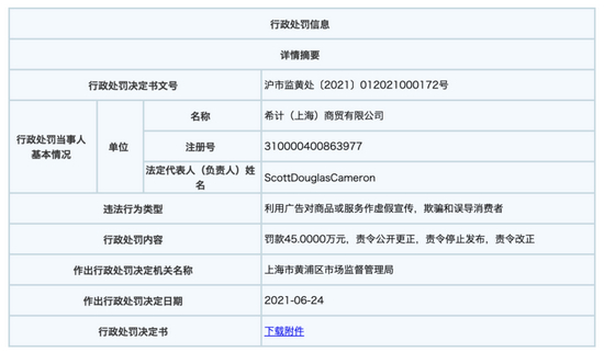 而在今年6月,“加拿大鹅”因“虚假广告宣传”被上海市黄浦区市场监督管理局罚款45万元,被责令停止发布违法广告,在相应范围内消除影响。