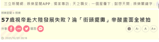 “赴大陆发展失败”“沦街头摆地摊”“晚景凄凉”等耸动字眼。