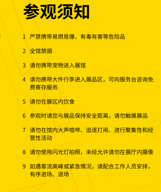 展馆入口处张贴的观众须知中,明确禁止携带相机、三脚架、大体积的包进馆,并没有禁止网红拍照。