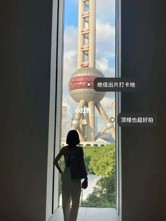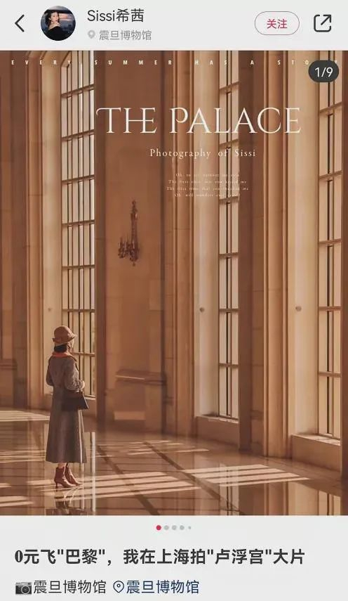 还有博主推荐说,上海有很多艺术场馆的陈设都很棒,出片率极高。比如在震旦博物馆的落地窗前,居然能拍出“卢浮宫”的大气效果。