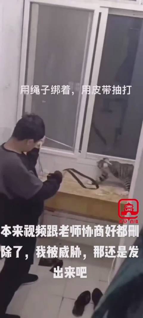 视频显示,一男子用绳子将猫绑住,并用皮带抽打它,有网友称,事发西安城市建设职业学院。有网友在学校官微下评论称,猫也是生命,该事件如何处理需要有个说法。