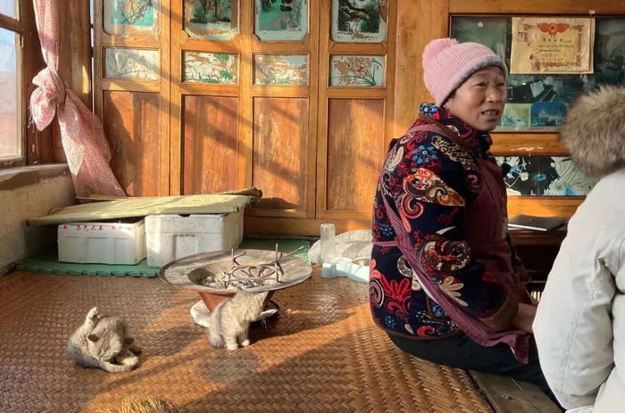 尖顶砖瓦房,阳坡上是红色的瓦片,阴坡上是未化的积雪。张同学家的院子里,同样覆盖着一层白雪,雪地里留着一道上厕所踩出来的小路。好奇的粉丝还会踩在雪地上拍照留念,甚至还会体验一把农村旱厕。