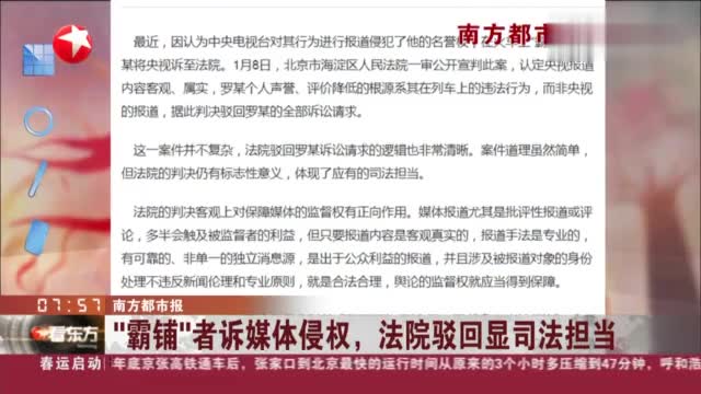 相关新闻:侵犯我的名誉权!霸铺男把央视告了…(环球网)