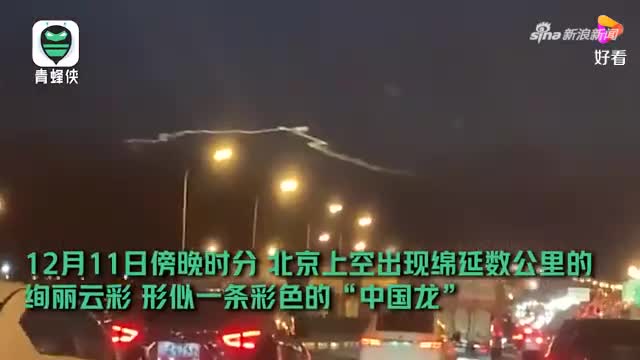 北京傍晚时分天际出现绚丽“祥云” 绵延数公里如彩色“中国龙”