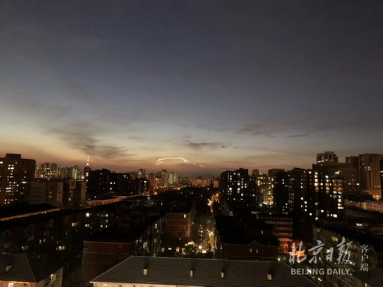 北京傍晚时分天际出现绚丽“祥云” 绵延数公里如彩色“中国龙”