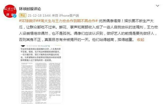 12月18日,@环球时报评论 就王力宏事件发布微评: